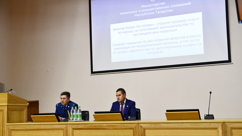 2018 нче елның 25 октябрендә ТР Җир һәм мөлкәт мөнәсәбәтләре министрлыгында министр урынбасары Рөстәм Шәмеев рәислегендә министрлык хезмәткәрләре катнашында коррупциягә каршы политиканы тормышка ашыру кысаларындагы, шул исәптән мәнфәгатьләр конфликтын җайга салу буенча чаралар күрү сорауларын карау буенча семинар-киңәшмә үтте. Семинар-киңәшмәдә Татарстан Республикасы Прокуратурасының коррупциягә каршы гамәлләр буенча законнарның үтәлешен күзәтү буенча бүлекнең өлкән прокуроры Вәлитов Роберт катнашты.
