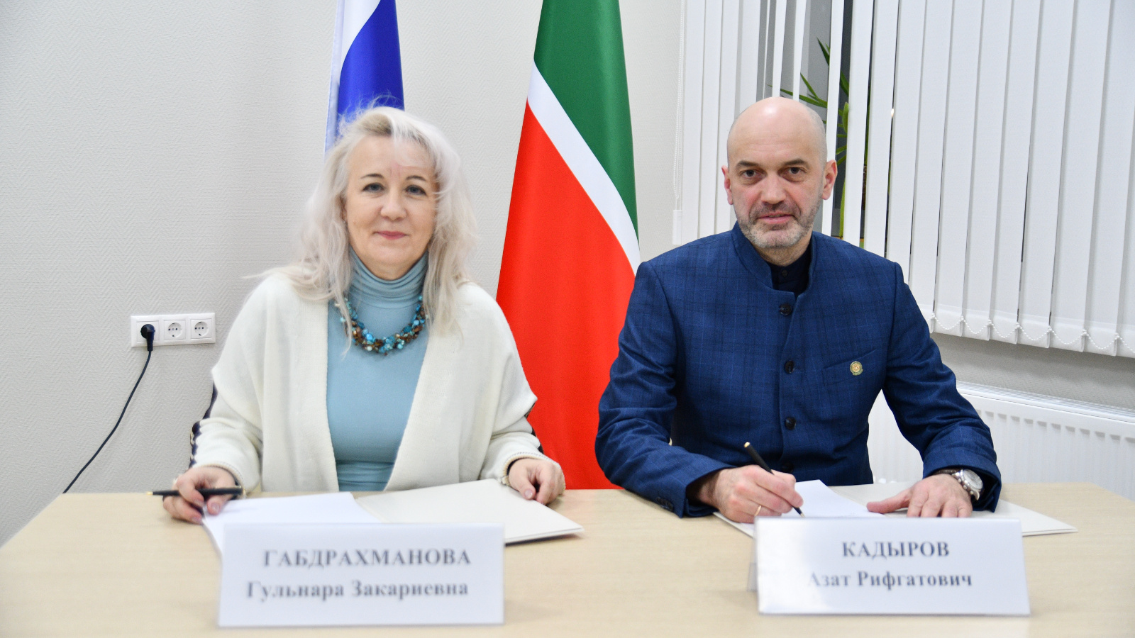 Утырыш барышында Татарстан Республикасы Җир һәм мөлкәт мөнәсәбәтләре министры Азат Кадыйров һәм Татарстан Республикасы Архив эше буенча Дәүләт комитеты рәисе Гөлнара Габдрахманова мәгълүмати багланышлар турында килешүгә кул куйдылар.